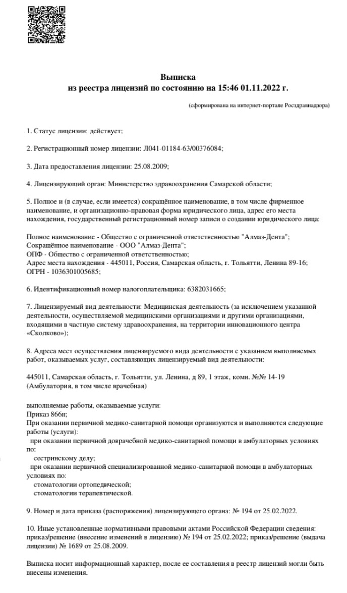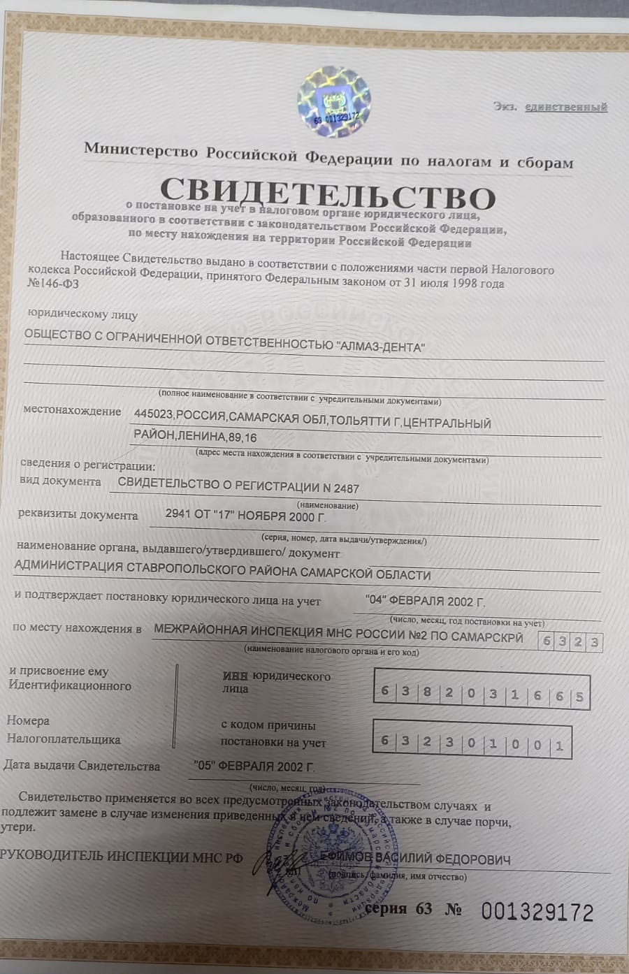 Наименование: ООО "АЛМАЗ-ДЕНТА"